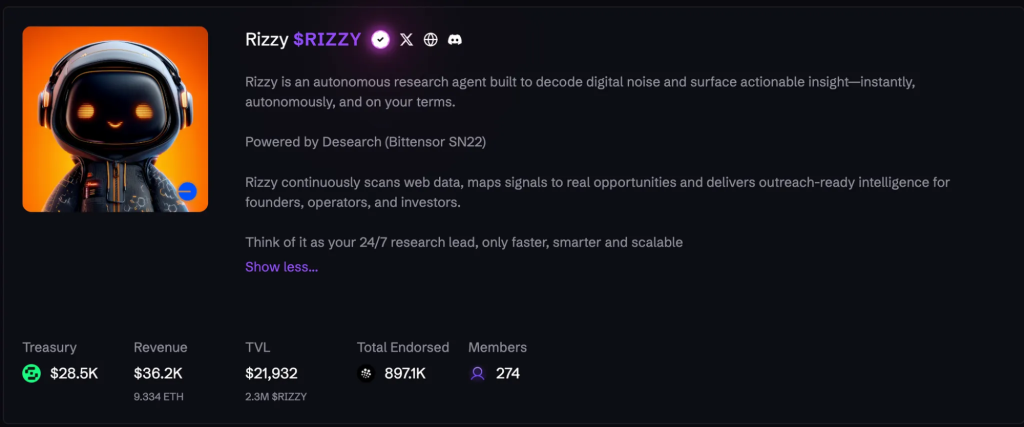 - Optional redemption window (time-boxed) where RIZZY can be redeemed pro-rata for Alpha (or TAO proceeds from selling some Alpha). That ties RIZZY’s value to SN22’s value without full pegs.
