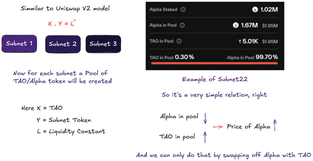 Initially this correlation wasn’t possible but, with the launch of dTAO or subnet tokens this can be possible. First I will quickly explain how dTAO works :