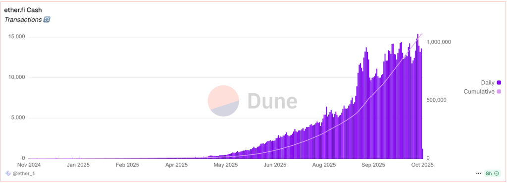 Etherfi on chain data shows touching $1 Mn on spend volume on a daily basis, BTW this is much much lower than what traditional bank and credit card providers provide!!